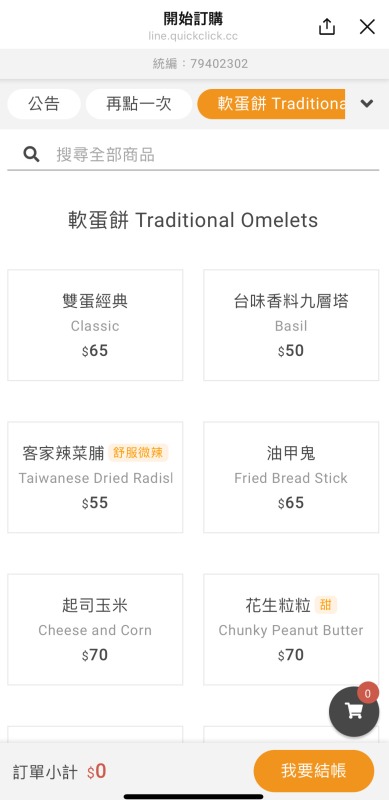この画面は看板メニューの蛋餅(ダンビン、たまごロール)ですが