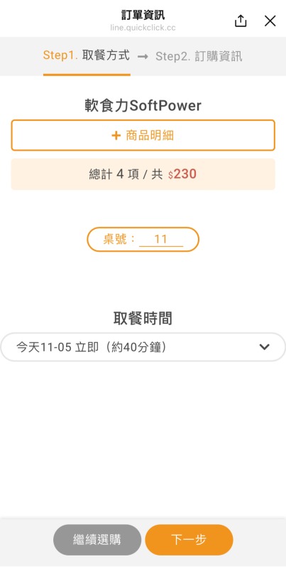 注文したいものを選択し終えたらこのような画面に。